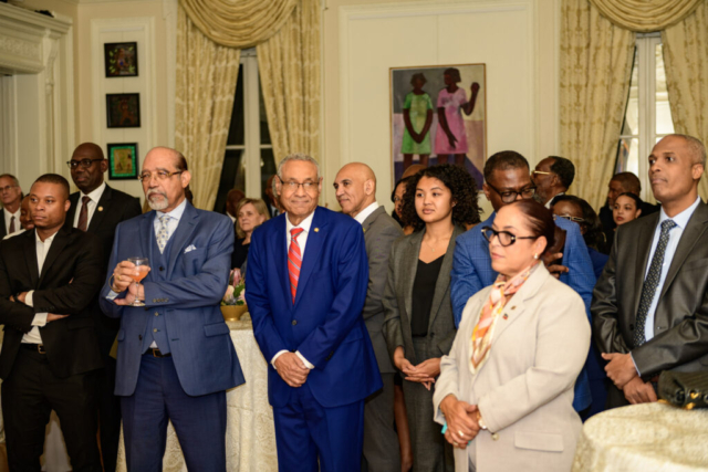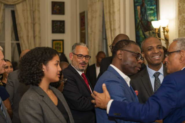The U.S. Haitian Chamber of Commerce was pleased to have its President & CEO, Dr. Hans Patrick Domercant, participate in the cocktail reception hosted by H.E. Lionel Delatour, Ambassador of the Republic of Haiti to the United States, at the Embassy of Haiti in Washington, D.C., in honor of H.E. Alix Didier Fils-Aimé, Prime Minister of Haiti, and H.E. Raina Forbin, Minister of Foreign Affairs and Worship of Haiti.